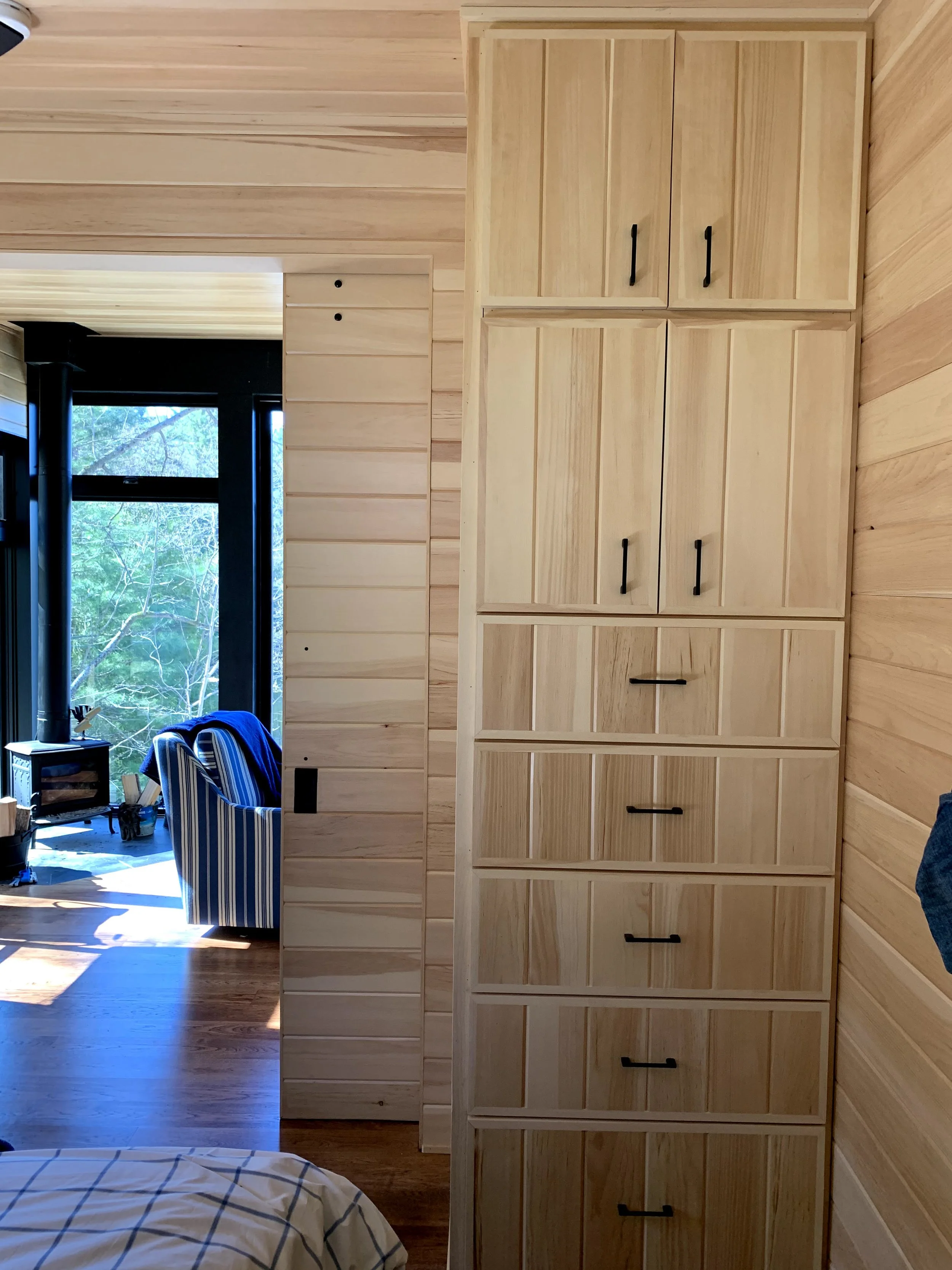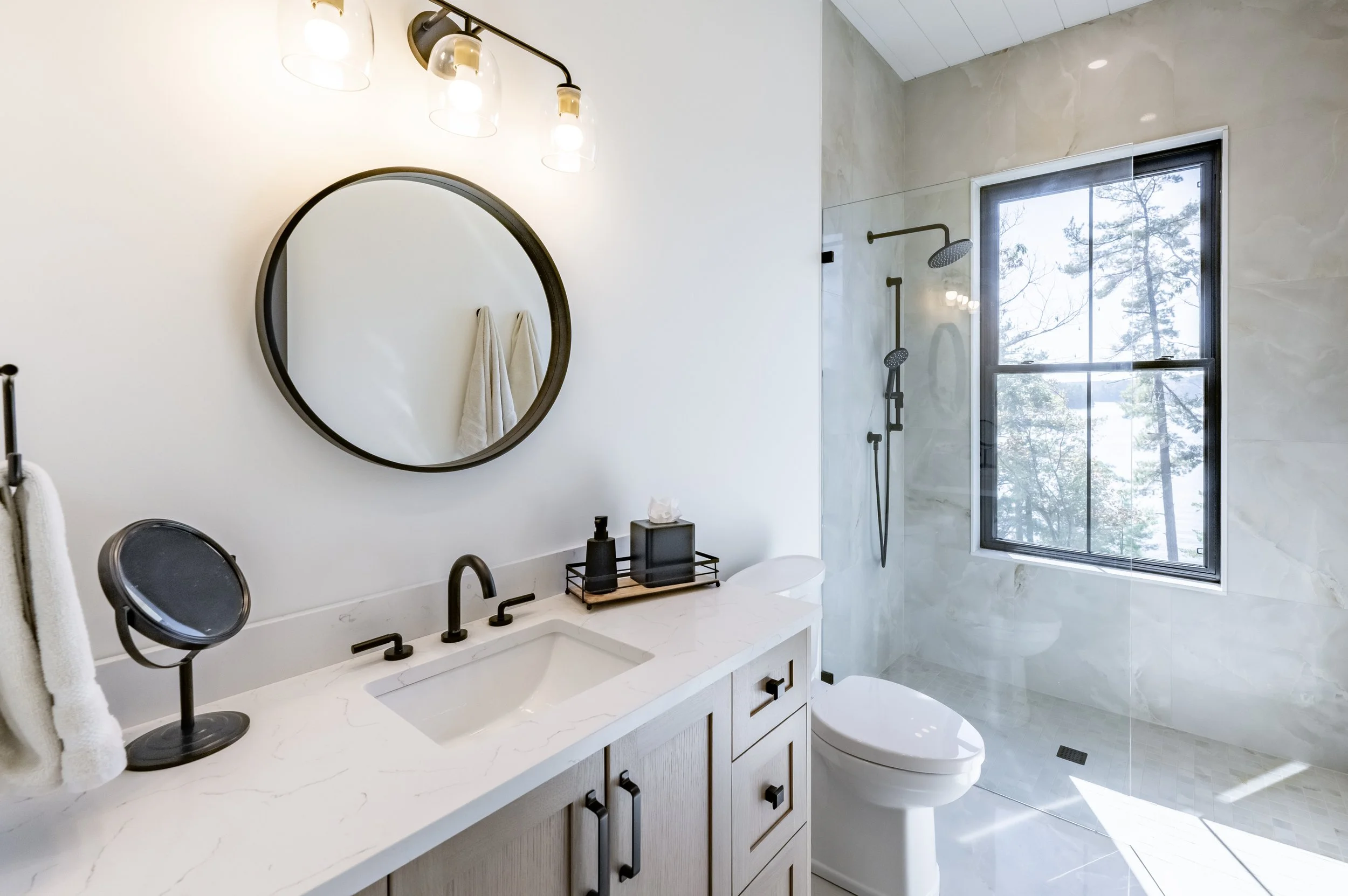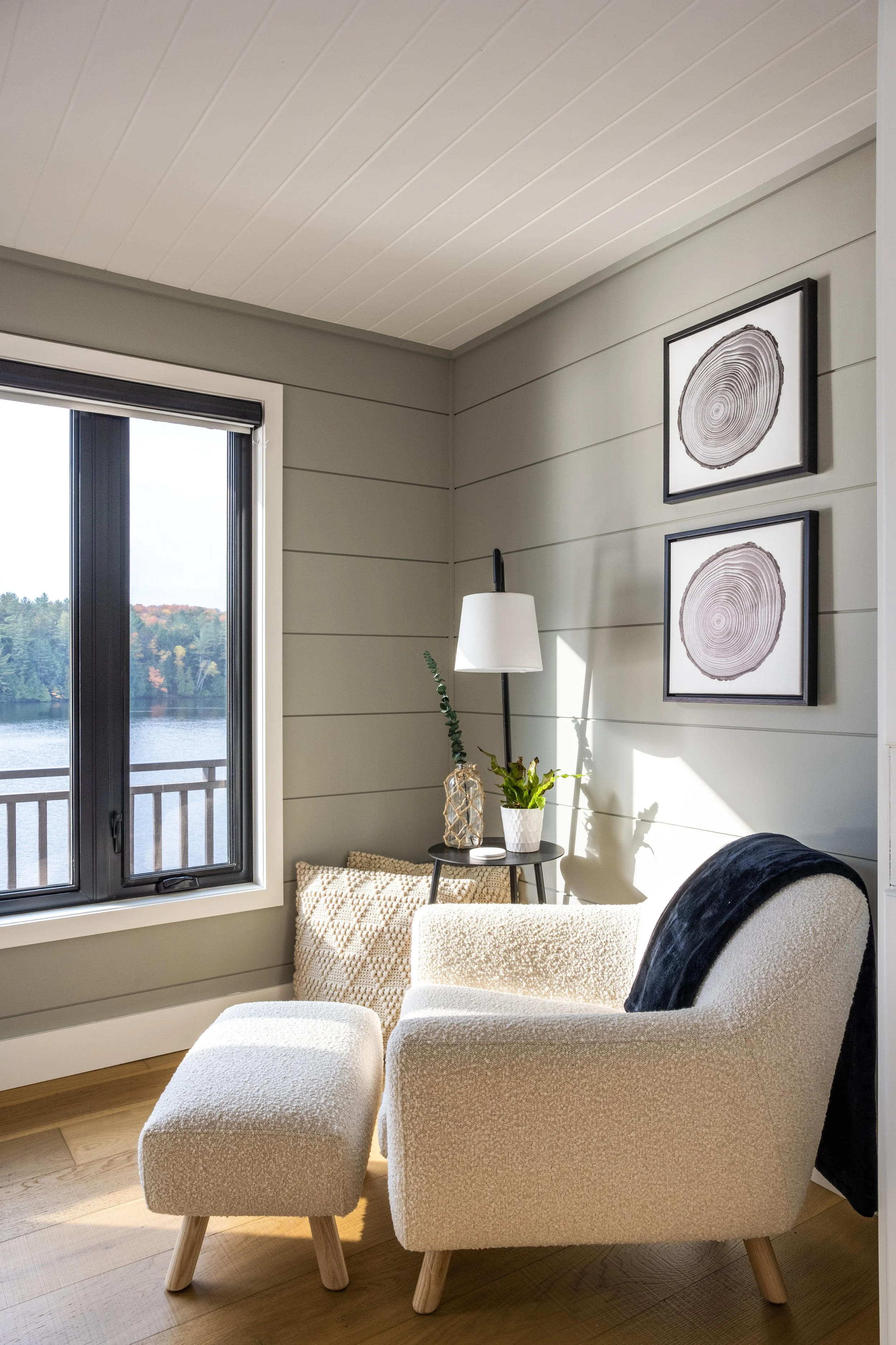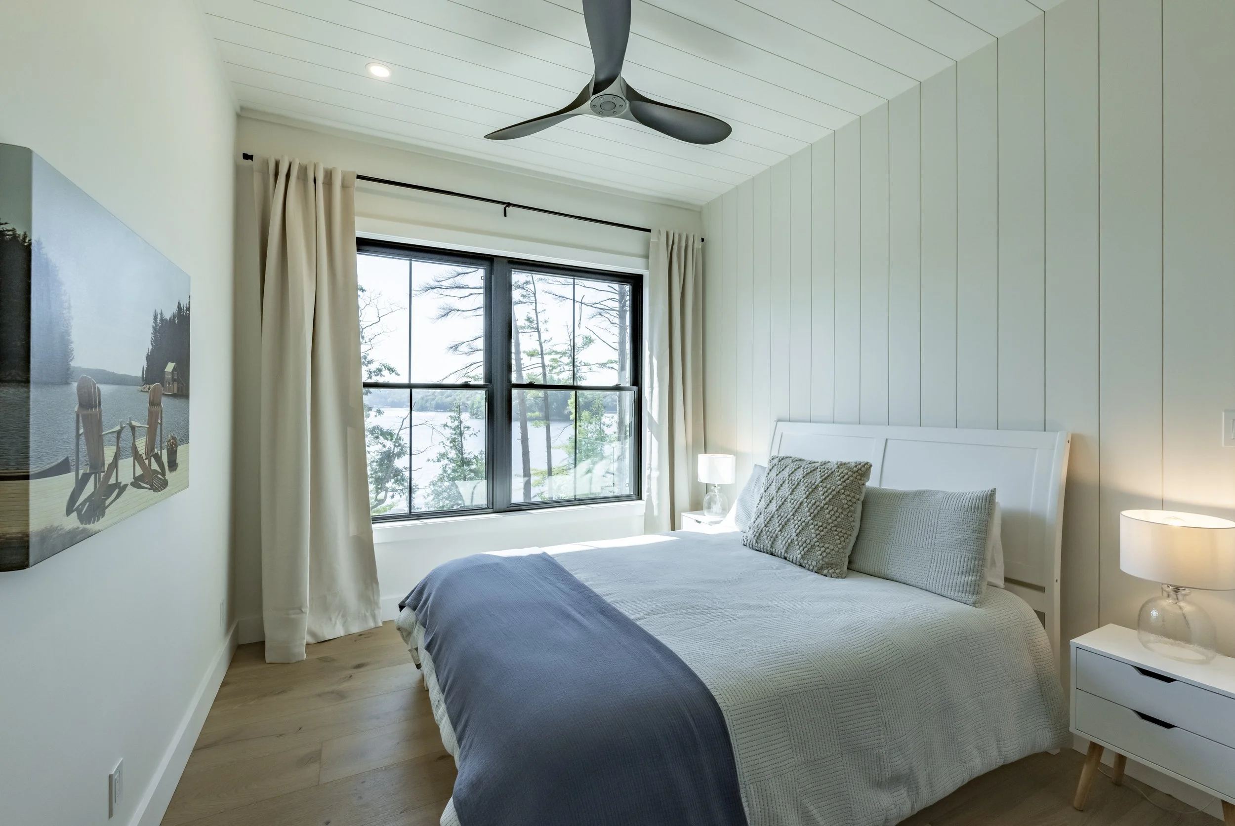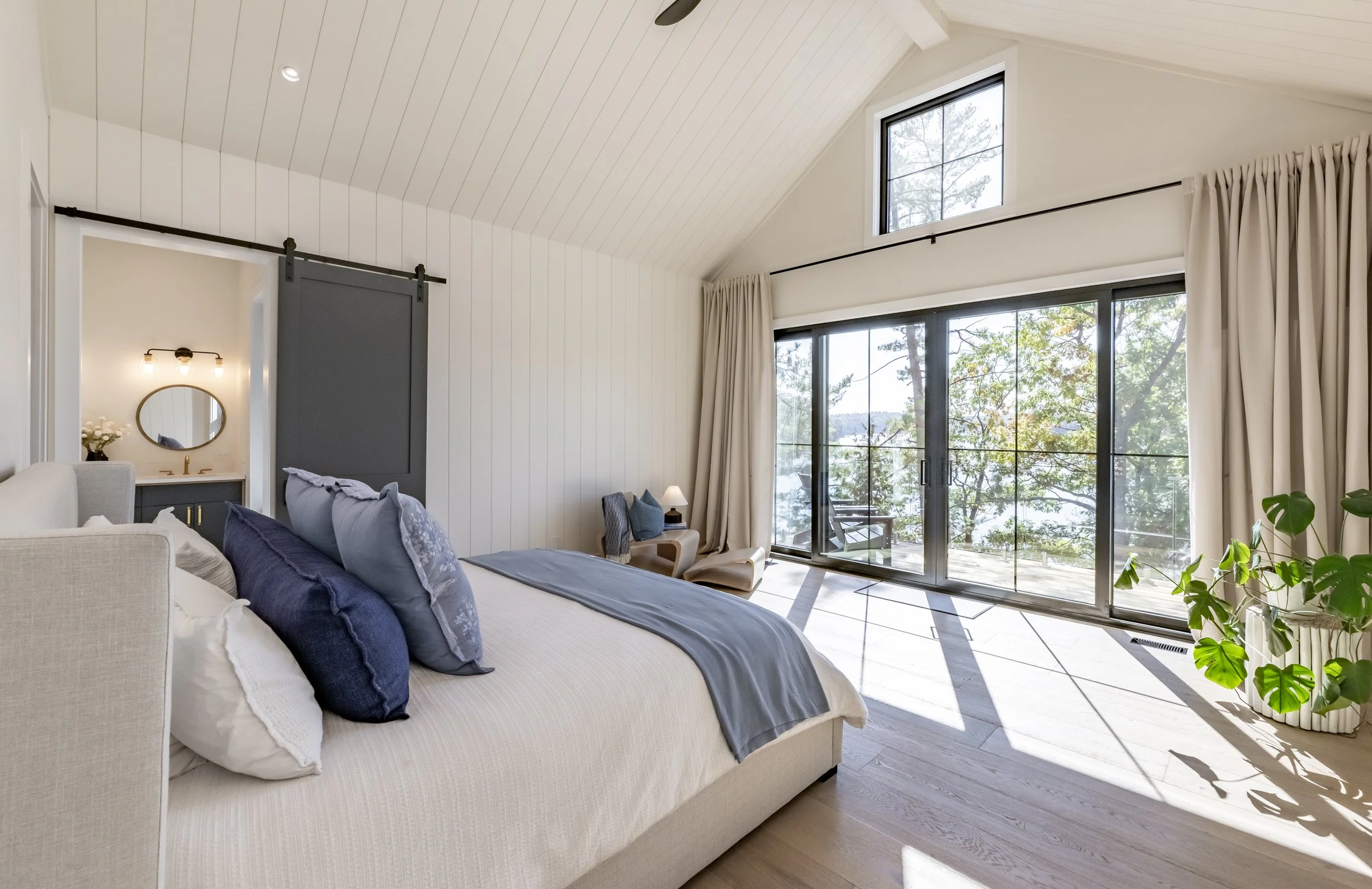 “We have worked with Ferncliffe Development for over a decade and have always been impressed with their design skills, problem-solving, responsiveness and high-quality results. Their renovation of the vintage portion of our cottage created a massive master bedroom suite with walkout to the deck, a wall of windows, beautiful hardwood floors and a gorgeous stone wall behind the bed using materials from a decommissioned local resort. We always call them first.”